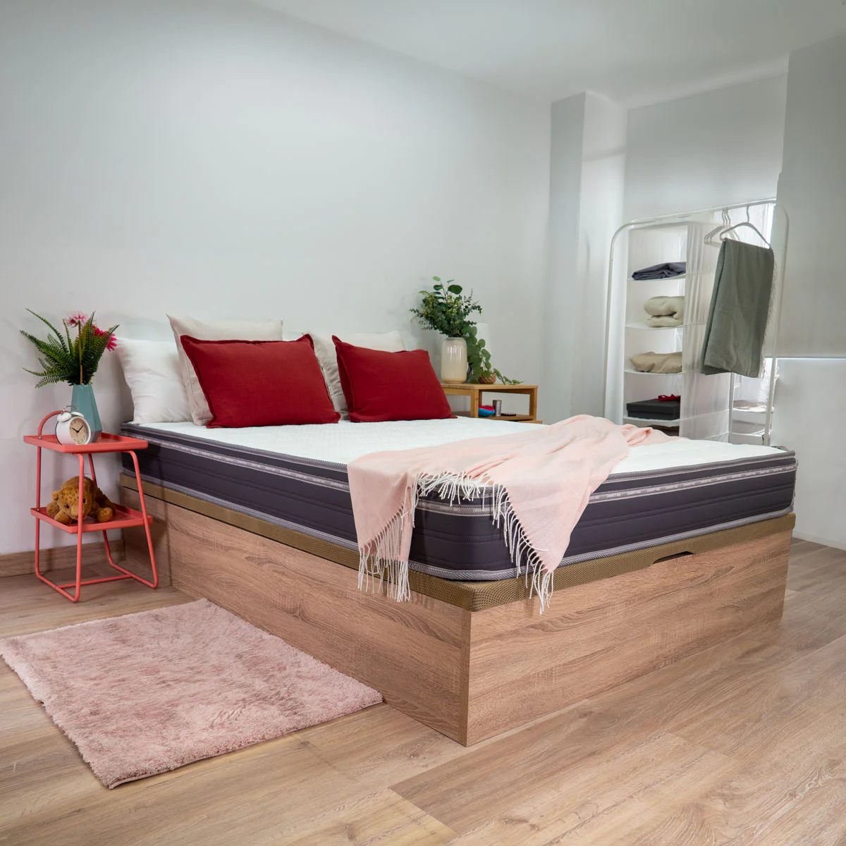 El canapé de madera Novo es la solución ideal para quienes buscan una combinación de estilo, durabilidad y funcionalidad en su dormitorio. Altura total del canapé de 34cm